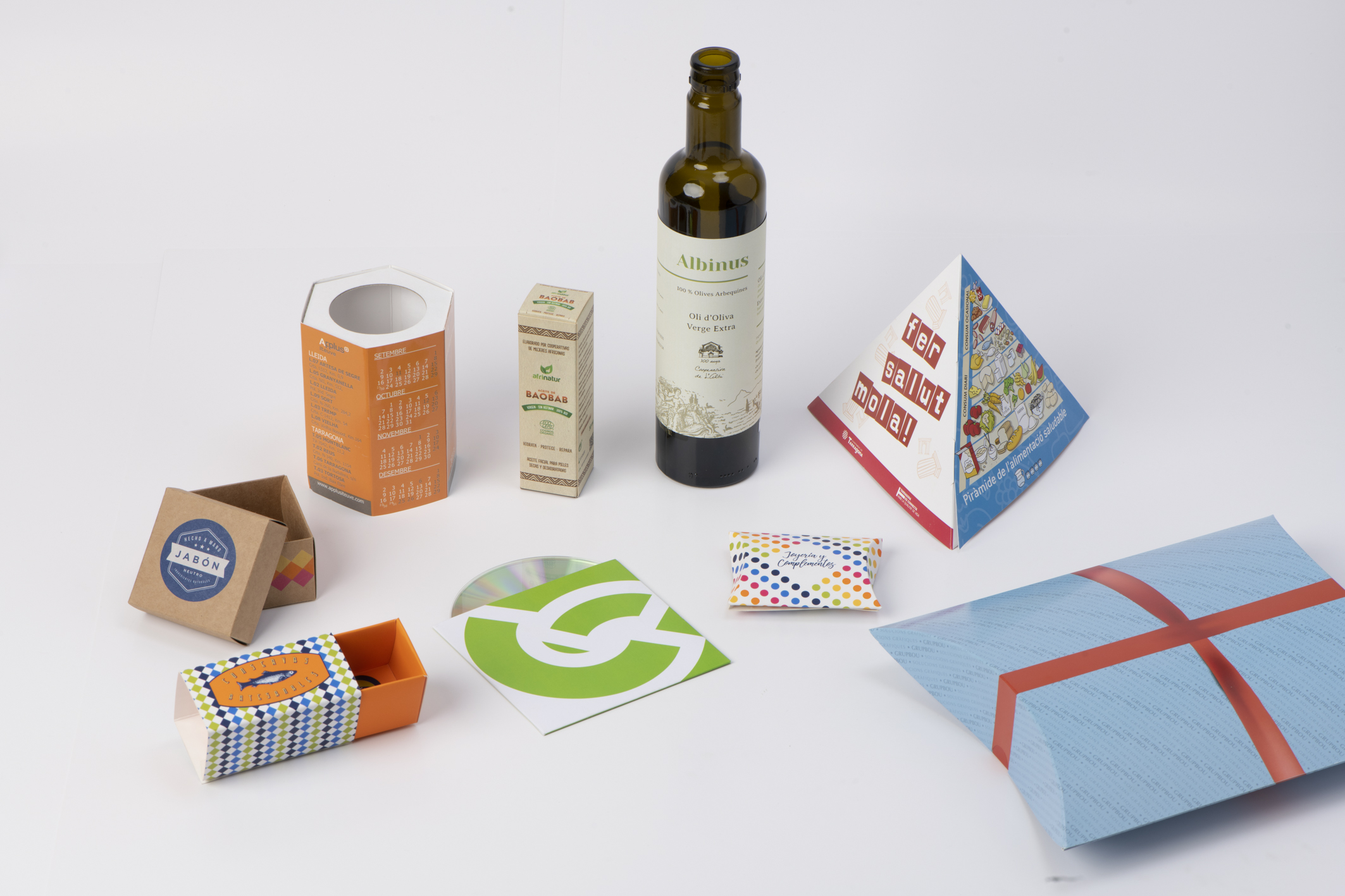 Disseny, producció i impressió de packaging a mida amb múltiples opcions de materials, acabats i formats adaptats a cada producte i necessitat. Caixes automuntables amb sistema d’encaixos i fandits.